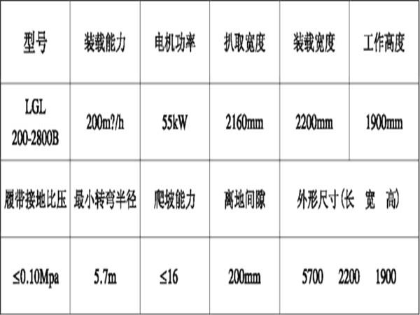 LGL 200-2800B系列滾耙裝載機技術參數: