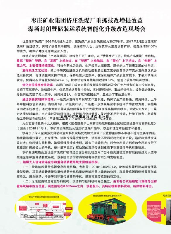 本產品一經推出即獲得各大設計院及用戶的一致好評,率先在棗礦集團岱莊煤礦取得成功應用,2018年9月受邀參加了《棗礦集團煤場封閉暨儲裝運系統智能化升級改造現場會》,智能裝車系統得到了充分肯定!我司憑借雄厚的加工制造實力及過硬的創新技術能力,勢必為運輸稱重系統、快速計量裝車系統帶來又一次的技術創新變革。